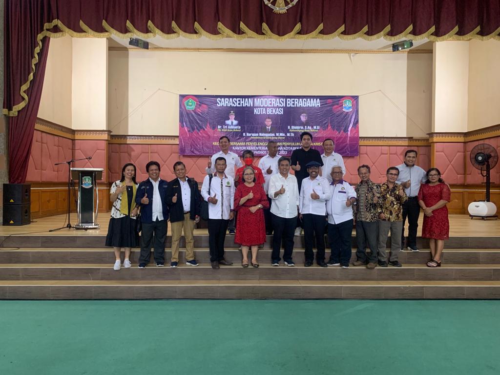 Kota Bekasi – pelitakota.id penyelenggara bimas kristen dan penyuluh kota bekasi menggelar Sarasehan moderasi beragama, yang di selenggarakan di balai patriot kota Bekasi, pada tanggal 24 Juni 2023.