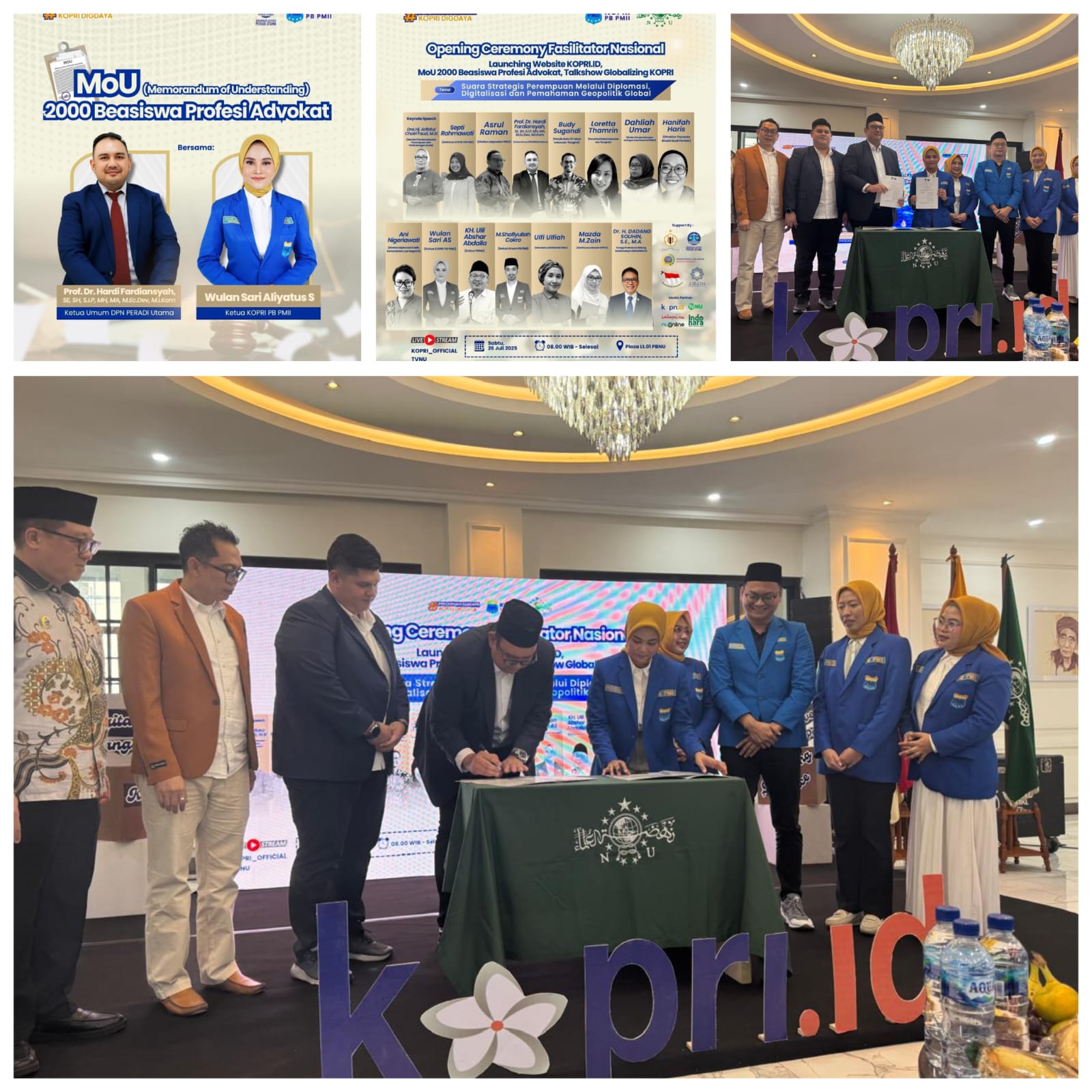 Jakarta, 26 Juli 2025 – Dalam rangka meningkatkan peran strategis perempuan di tingkat nasional dan internasional, Organisasi Advokat Persaudaraan Indonesia Utama (Peradi Utama) dan KOPRI PB PMII menandatangani Nota Kesepahaman (MoU) untuk memberikan 2000 beasiswa profesi advokat kepada kader-kader perempuan muda di lingkungan Pergerakan Mahasiswa Islam Indonesia (PMII).