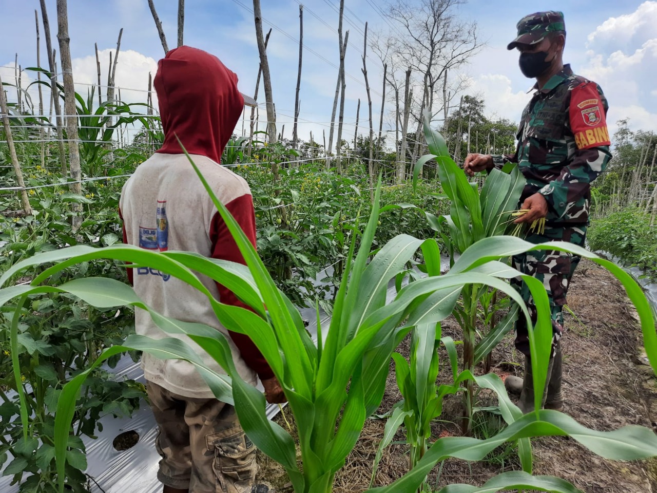 PENAJAM – Bintara Pembina Desa atau Babinsa Koramil 0913 – 01/Penajam Kodim 09013/PPU Koptu Gampang melaksanakan kegiatan pendampingan kepada petani tomat dan Jagung dilahan milik Slamet di RT 14 Kelurahan Petung Kecamatan Penajam Kabupaten Penajam Paser Utara, Minggu (3/07/2022).