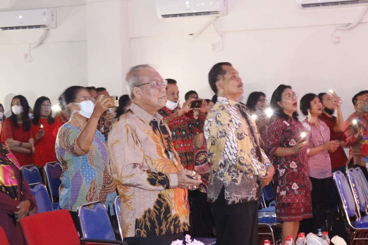 Acara dimulai dengan ibadah pujian dan penyembahan, para umat yang hadir dalam ibadah mengikuti jalannya ibadah dalam perayaan Natal tersebut.