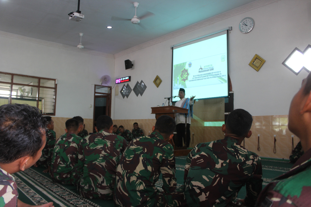 MALANG – PELITAKOTA.ID . Diiringi dengan tim Hadrah Batalyon Arhanud 2 Kostrad, peringatan Maulid Nabi Muhammad SAW di Masjid Moch Bachrowazi Yonarhanud 2 Kostrad dipimpin langsung oleh Danyon Arhanud 2/ABW/2 Kostrad Letkol Arh Agus Nur Fujianto, S.I.P., M.Han. dan diikuti oleh seluruh prajurit serta warga Yonarhanud 2/ABW/2 Kostrad. Malang. Selasa (19/10/2021).
