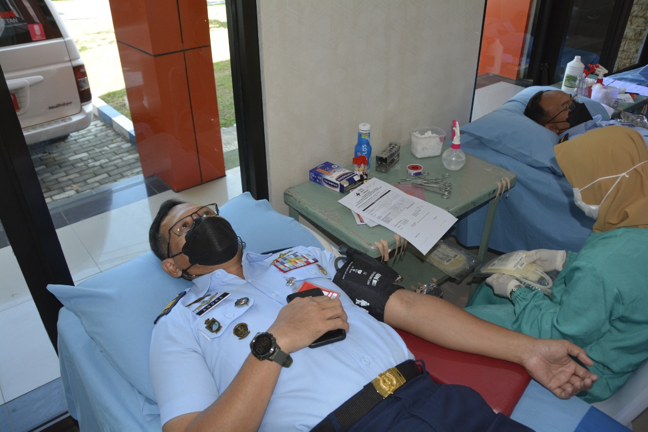 Magetan – Pangkalan TNI AU Iswahjudi bekerjasama dengan Palang Merah Indonesia (PMI) Kabupaten Magetan melaksanakan kegiatan donor darah dalam rangka peringatan ke-75 Hari Bakti TNI AU, yang dilaksanakan di gedung Dede Suwenda Rumah Sakit dr. Efram Harsana Lanud Iswahjudi, Kamis (21/7).