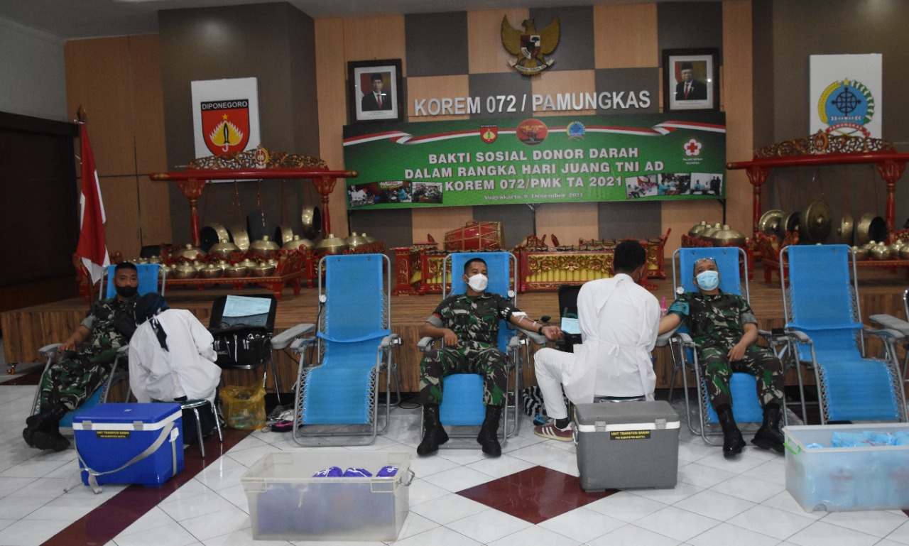 Kasilog Kasrem 072/Pamungkas Kolonel Cpl Achmad Djuliardi menyampaikan bahwa kegiatan donor darah merupakan kegiatan rutin yang dilakukan oleh Korem 072/Pamungkas dalam rangka memperingati Hari Juang TNI AD.