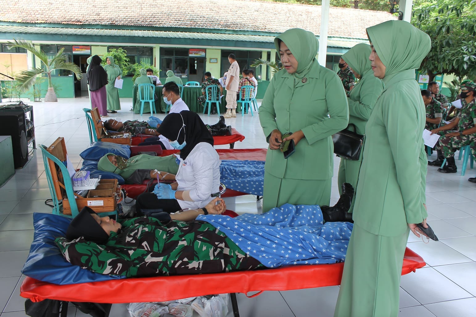 Sragen – Dalam rangka menyambut HUT TNI ke – 77, Kodim 0725/ Sragen menggelar kegiatan kemanusiaan dengan mengadakan donor darah, yang diselenggarakan di Aula Guyub Rukun Makodim 0725/Sragen. Kegiatan donor darah tersebut diikuti oleh anggota Kodim 0725/Sragen, Polres Sragen, Persit Kodim Sragen, Minvet, PGRI, Satpol PP, BPBD, perguruan pencak silat Sragen dan elemen masyarakat lainnya. Senin, 03/10/2022.