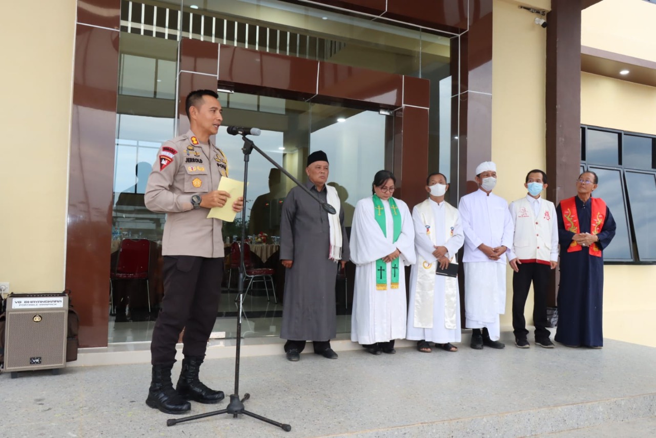 Sambutan Kapolres Kubu Raya AKBP Jerrold H.Y. Kumontoy, S.I.K., M.Si., mengatakan, Tujuan kegiatan ini yaitu untuk meminta Doa Keselamatan sebelum melaksanakan acara peresmian yang direncanakan akan dilaksanakan pada bulan ini, dalam amanatnya