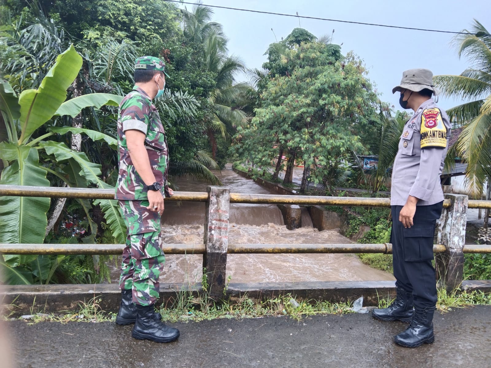 Lebak-Untuk mengantisipasi banjir di wilayah Kecamatan warunggunung Kabupaten Lebak, Personil Polsek Warunggunung dan Personil Koramil Warunggunung melakukan pengontrolan dan pengecekan ketinggian debit air Sungai Cisangu di Kempeng Desa Cempaka Kecamatan warunggunung, Kabupaten Lebak, Sabtu Pukul 10.00 Wib (16/07/2022).