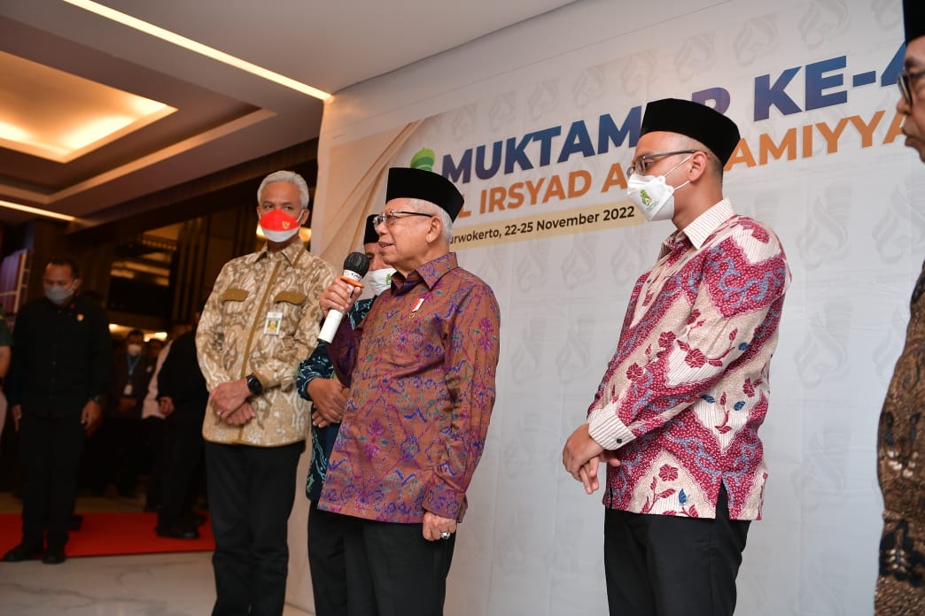 “Kita harus mencapai cita-cita kemajuan, pembangunan, pemerataan, keadilan itu dalam tempo 23 tahun ke depan karena itu perlu sumber daya manusia unggul juga perlu pemimpin yang transformatif dan visioner dan inovatif sehingga tujuan kita itu akan bisa tercapai dengan cepat, Insyaa Allah” tutur Wakil Presiden (Wapres) K.H. Ma’ruf Amin dalam sambutannya pada acara Peresmian Pembukaan Muktamar Nasional ke-41 Al Irsyad Al Islamiyyah di Hotel Java Heritage, Jalan Dr. Angka Nomor 71, Karangkobar, Sokanegara, Kecamatan Purwokerto Timur, Kabupaten Banyumas, Rabu (23/11/2022).