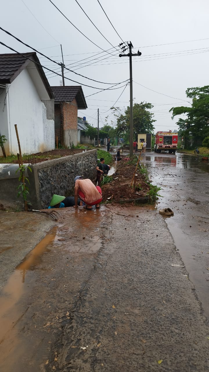 Petugas Pemadam Kebakaran Kabupaten Bogor turun tangan membantu warga dengan menurunkan langsung 1 armada mobil damkar untuk membantu membersihkan parit dan gorong-gorong yang mampet akibat sedimentasi yang cukup parah.