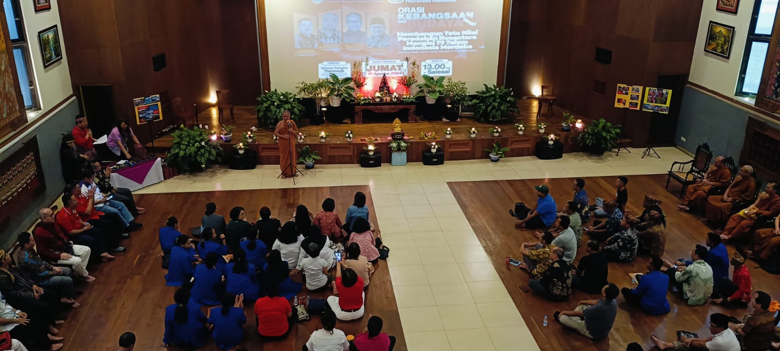 Jakarta,Pelitakota.id Dalam rangka merayakan HUT Ke 79 tahun Kemerdekaan Republik Indonesia, Persatuan wartawan Nasrani (PEWARNA) Indonesia bekerjsama dengan Wisma Sangha Teravada menggelar Orasi kebangsaan dan gelar budaya mengangkat tema “Membangun tata nilai peradaban nusantara mengisi 79 tahun kemerdekaan Indonesia’ di gelar di wisma Sangha Teravada, Jalan Margasatwa 9, Pondok Labu Jakarta Selatan Jumat ( 16/8/24)