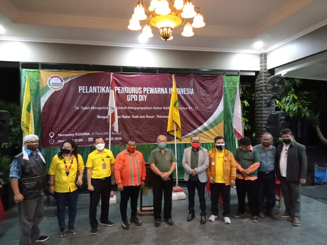 Yogyakarta,Pelitakota.Id Dewan Pengurus Pusat Persatuan Wartawan Nasrani Indonesia (PEWARNA) menggelar Pelantikan Pengurus Daerah Provinsi Daerah Istimewa Yogyakarta PEWARNA dengan masa bakti periode 2021-2026 di Pendopo Kusuma Homestay Jalan Parangtritis Km.7 Bantul, Yogyakarta. Acara diselenggarakan dengan prokes ketat pada 31 Juli 2021 pukul 16.30-17.30 WIB dan diadakan secara hybrid, yakni melalui sarana online dan tatap muka.