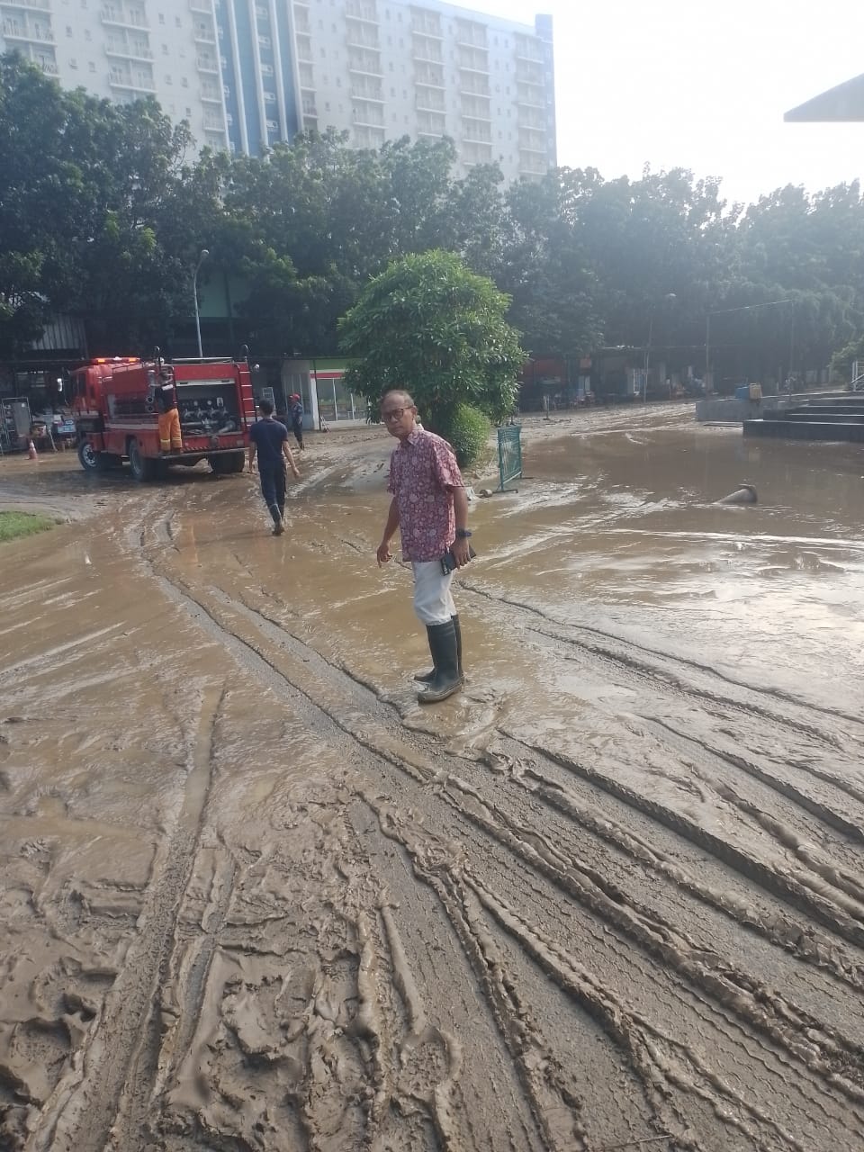 KOTABEKASI – Dr. Heri Suko Martono, ketua Yayasan Nurul Islam KH Noer Alie mengapresiasi langkah cepat Wali Kota Bekasi Tri Adhianto dengan menerjunkan mobil penyemprot air Disdamkarmat Kota Bekasi untuk membantu membersihkan sisa lumpur pasca banjir yang melanda area Islamic Center Bekasi.