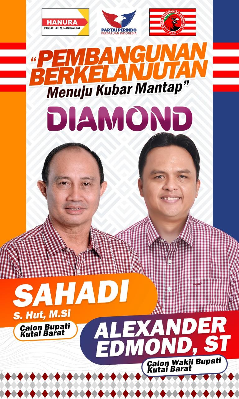 Pasangan yang di usung oleh partai politik Hanura – Perindo dan PKN ini juga mendapat dukungan masyarakat dari kabupaten Kutai Barat, karena kehadiran pasangan Cabub dan cawabup akan diharapkan merubah kehidupan dan perubahan untuk kabupaten Kutai Barat. Seperti di ketahui bahwa sosok Sahadi yang cukup lama mengabdi di pemerintahan dengan karier yang baik memilih pensiun dini demi totalitas dalam pilkada 2024 ini, dengan ditopang oleh seorang Momond yang adalah pengusaha yang memiliki reputasi baik, serta mendapatkan dukungan semangat kemenangan dari seorang tokoh masyarakat sekaligus tokoh Politik Kabupaten Kutai barat Bapak Yapan, yang demi totalitas mendukung pasangan DIAMOND rela mengundurkan diri sebagai ketua DPC PDIP Kutai Barat.