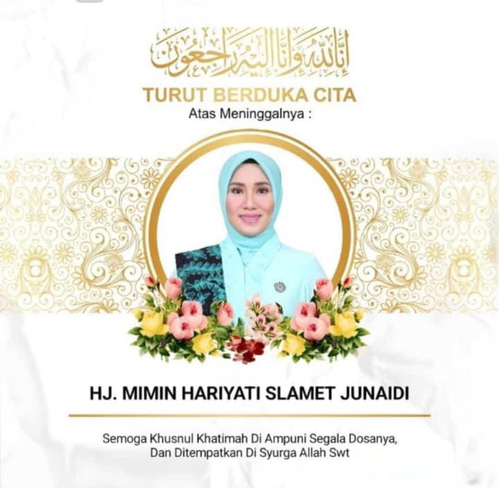 Pimpinan Redaksi media Tintahukum.com menyampaikan turut berduka cita atas kepergian Hj Mimin Hariyati. Semoga Almarhumah Husnul khatimah dan diampuni segala kesalahannya. Aamiin Ya Robbal Alamin. (Red)