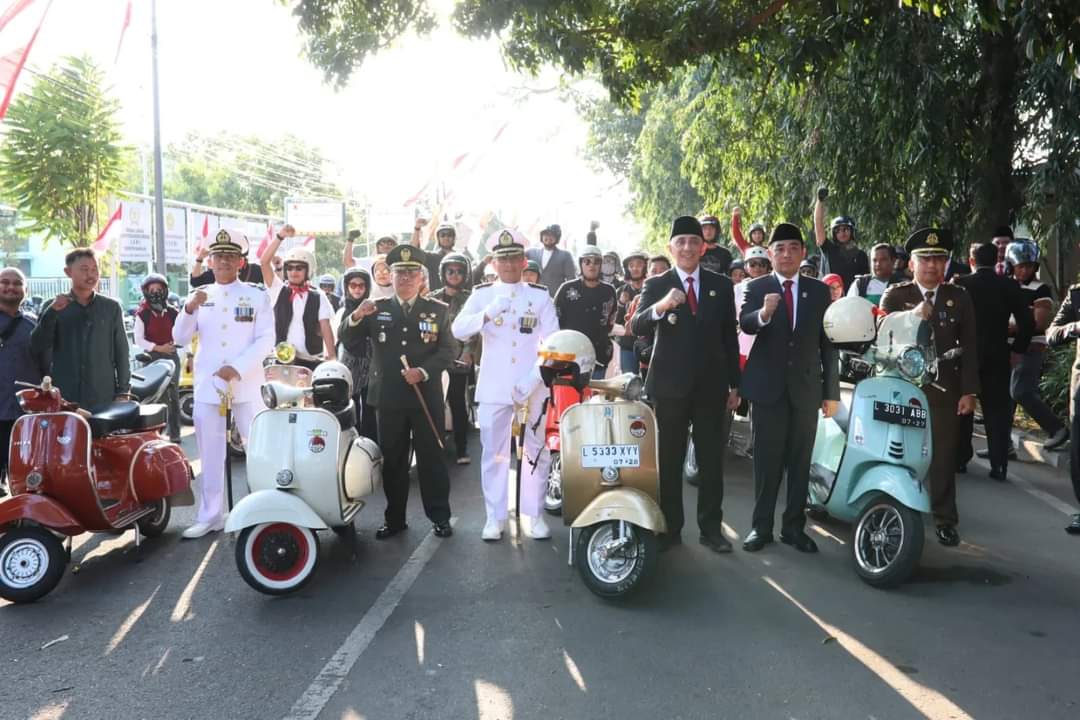 Uniknya Penjabat (Pj) Bupati Bangkalan Dr. Arief M. Edie, M.Si bersama jajaran Forkopimda Bangkalan menyempatkan berkendara bersama puluhan rider dari motor custom, scuba dan motor classic Bangkalan menuju lokasi pelaksanaan upacara.