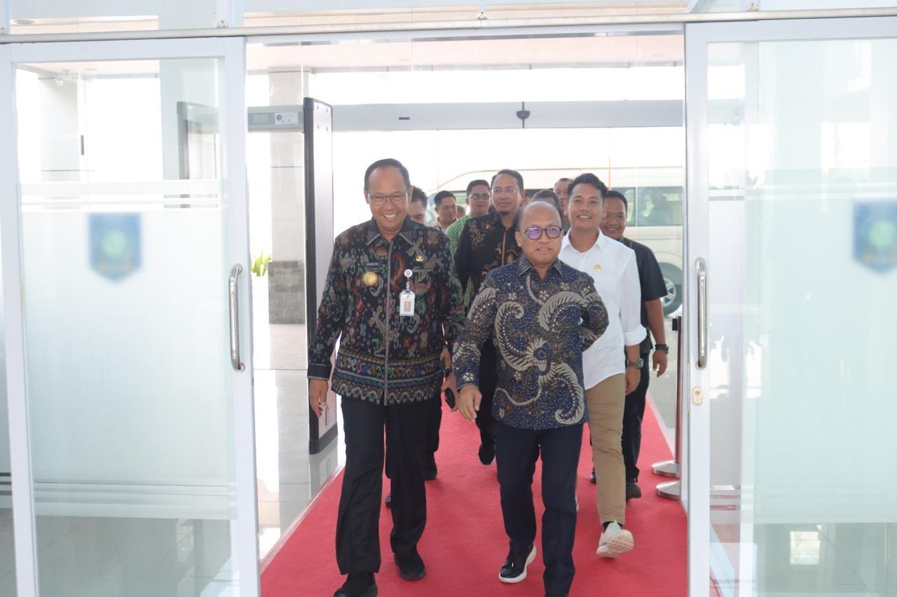 Sekjen Anwar Sanusi pada kunjungannya kali ini mengenakan baju batik lengan panjang berwarna biru donker. Merasakan hangatnya sambutan sang tuan rumah, dirinya dengan senyum khas bersalaman dengan Pj Gubernur Sugito.
