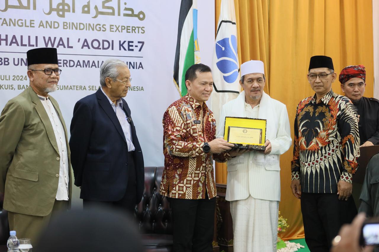 Palembang – Penjabat Gubernur Sumatera Selatan (Sumsel) Elen Setiadi, S.H, M.S.E ikut mendampingi Tun Dr. Mahathir Mohamad melakukan lawatan ke Sumsel guna menghadiri Pembukaan Muzakarah Ahlul Halli Wal Aqdi ke-7 yang dipusatkan di Auditorium Yayasan Pendidikan dan Dakwah Akuis Talang Kelapa Kabupaten Banyuasin, Selasa (2/7/2024). Mahathir Mohamad adalah Perdana Menteri Malaysia Periode 1981-2003 dan Tahun 2018-2020.