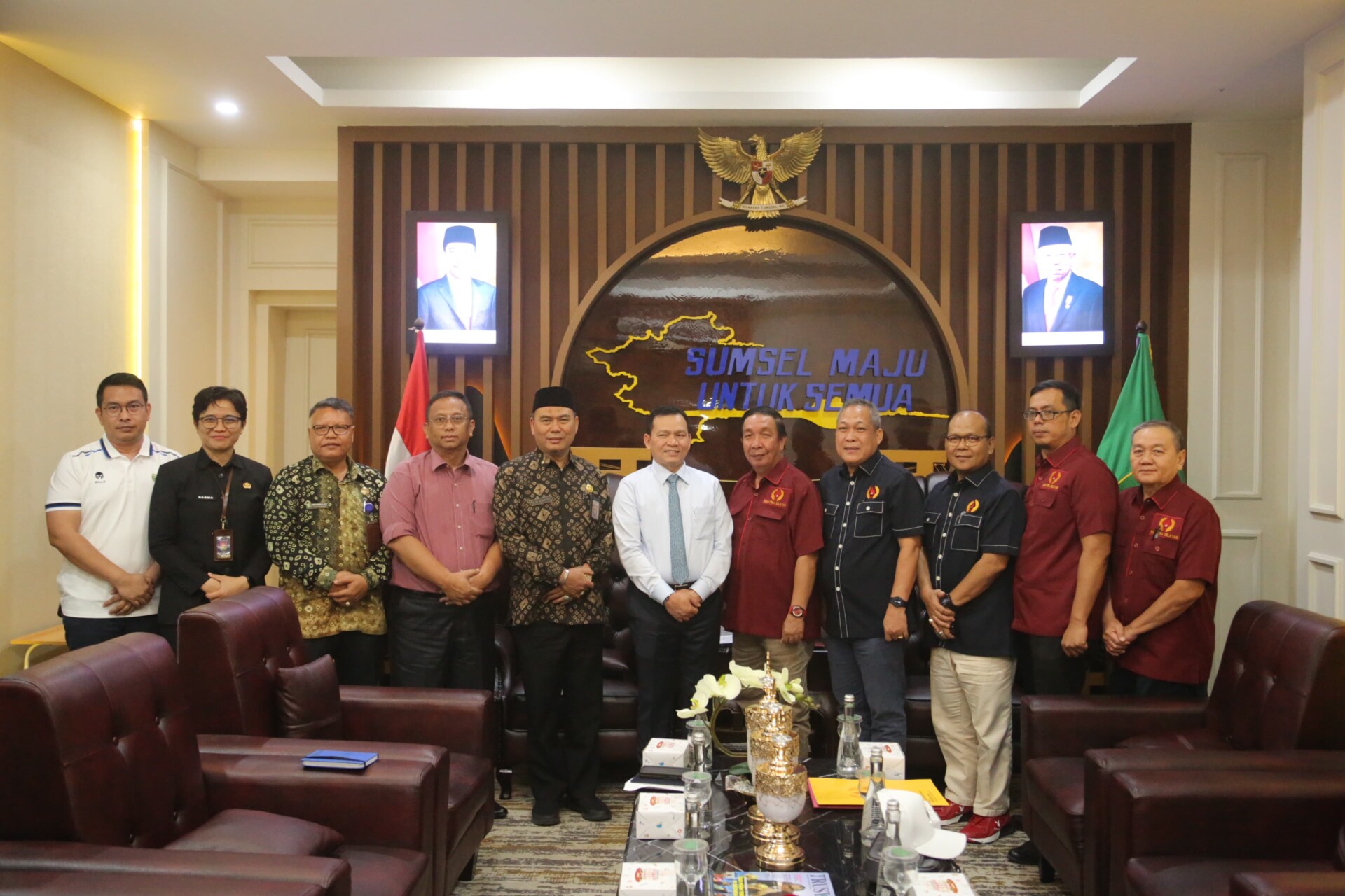Palembang – Penjabat (Pj) Gubernur Sumsel Elen Setiadi, SH. M.S.E menerima audiensi rombongan Pengurus Komite Olahraga Nasional Indonesia (KONI) Provinsi Sumsel di ruang tamu Gubernur, Jumat (16/8) sore. Audiensi ini dilakukan untuk melaporkan persiapan kontingen Sumsel dalam rangka mengikuti kegiatan Pekan Olahraga Nasional (PON) XXI Aceh-Sumut 2024.