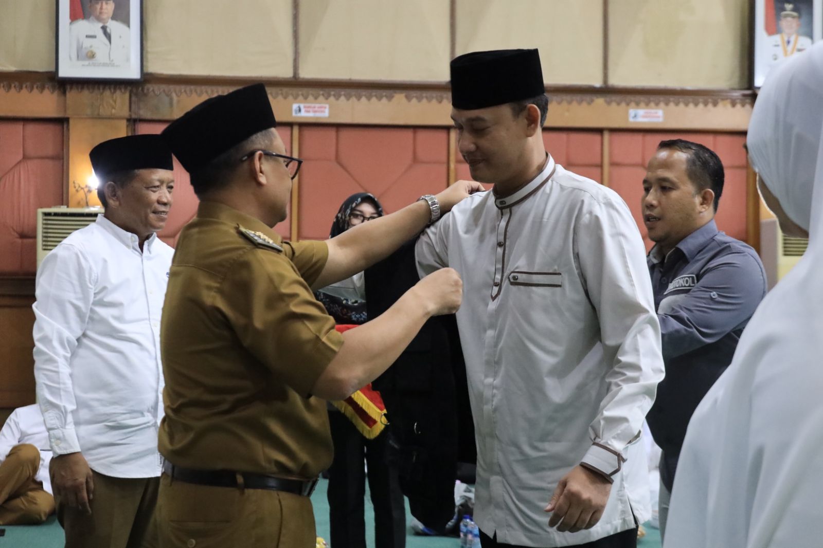 Kota Bekasi – Acara Ratib dan pelepasan Aparatur Pemerintah Kota Bekasi dalam menunaikan Ibadah Haji tahun 1445H/2024 M berlangsung di Balai Patriot Kantor Wali Kota Bekasi Jl. Jend A Yani. No.1. Selasa,(7/5/24).