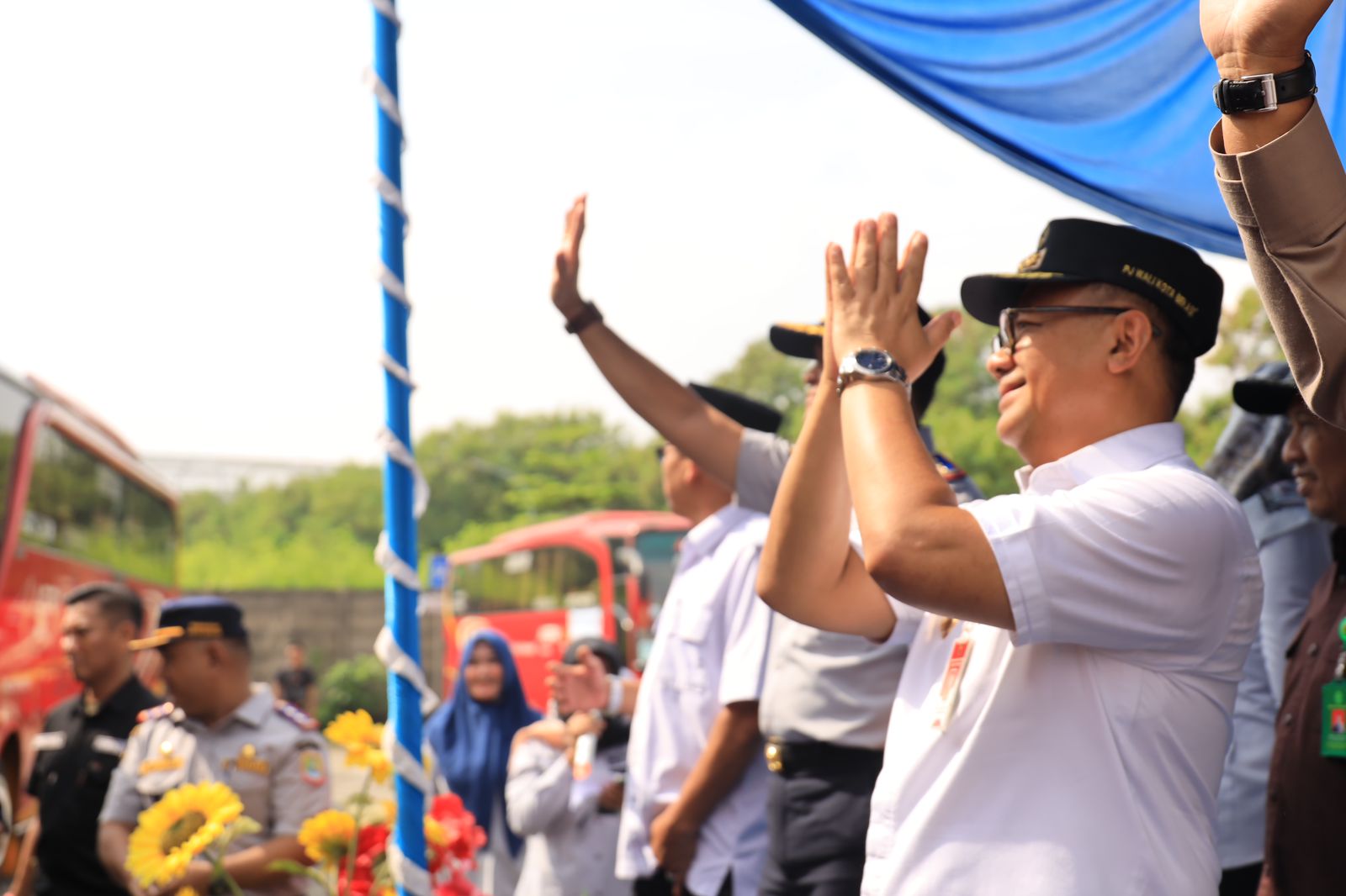 Kota Bekasi – Bertempat di halaman kantor Dinas Perhubungan (Dishub) Kota Bekasi, Pj. Wali Kota Bekasi Gani Muhamad bersama jajaran Dishub melepas keberangkatan 550 peserta mudik gratis ke 3 (tiga) Kota di Jawa Tengah, yakni Jogjakarta, Solo, dan Semarang pada Rabu (03/04)