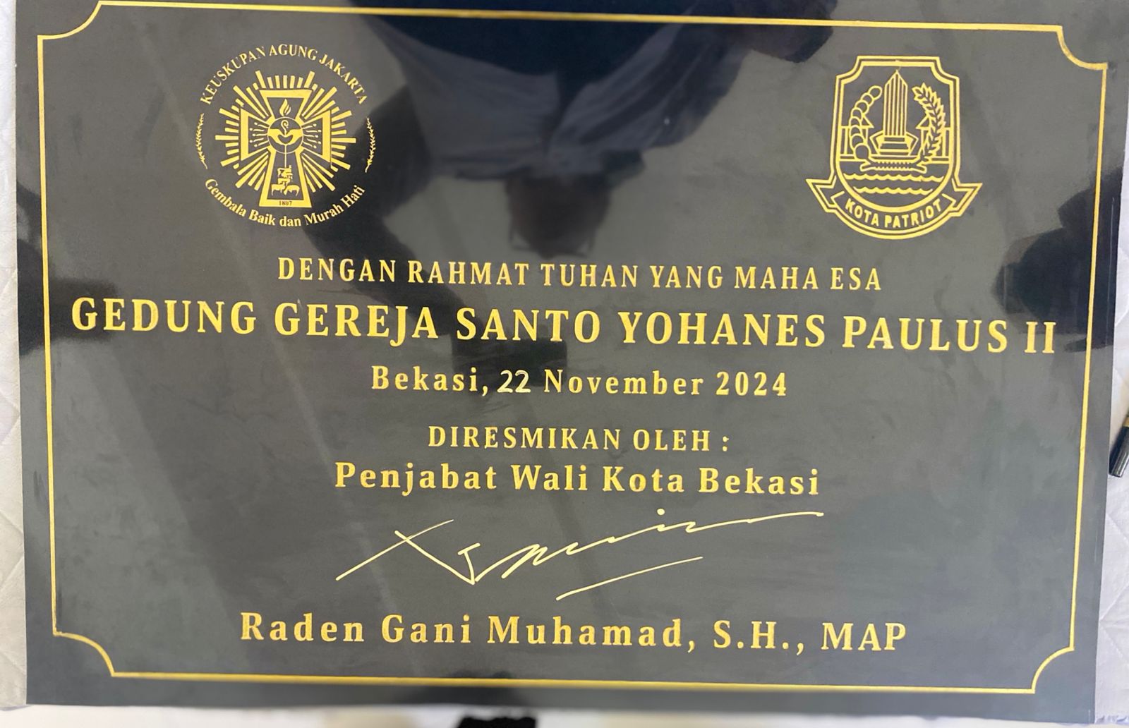 Sebagai wujud nyata komitmen tersebut, pada Jum’at (22/11), Pj. Wali Kota Bekasi, Gani Muhamad, meresmikan Gereja Santo Yohanes Paulus II, Stasi Rawalumbu, Paroki Bekasi yang berlokasi di Kelurahan Bojong Menteng, Kecamatan Rawalumbu.