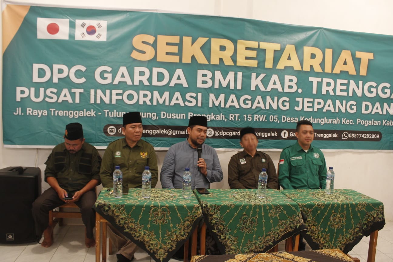 DPC PKB Kabupaten Trenggalek yang diwakili Gus Zaki dalam sambutannya menyampaikan dengan dibukanya kantor sekretariat DPC Garda BMI di Trenggalek yang dipimpin oleh Anugerah Iskandar Putra kiranya, dapat dijadikan tempat pelayanan serta untuk memperjuangkan hak pekerja migran Indonesia khususnya warga Trenggalek yang berada di sejumlah negara dunia.
