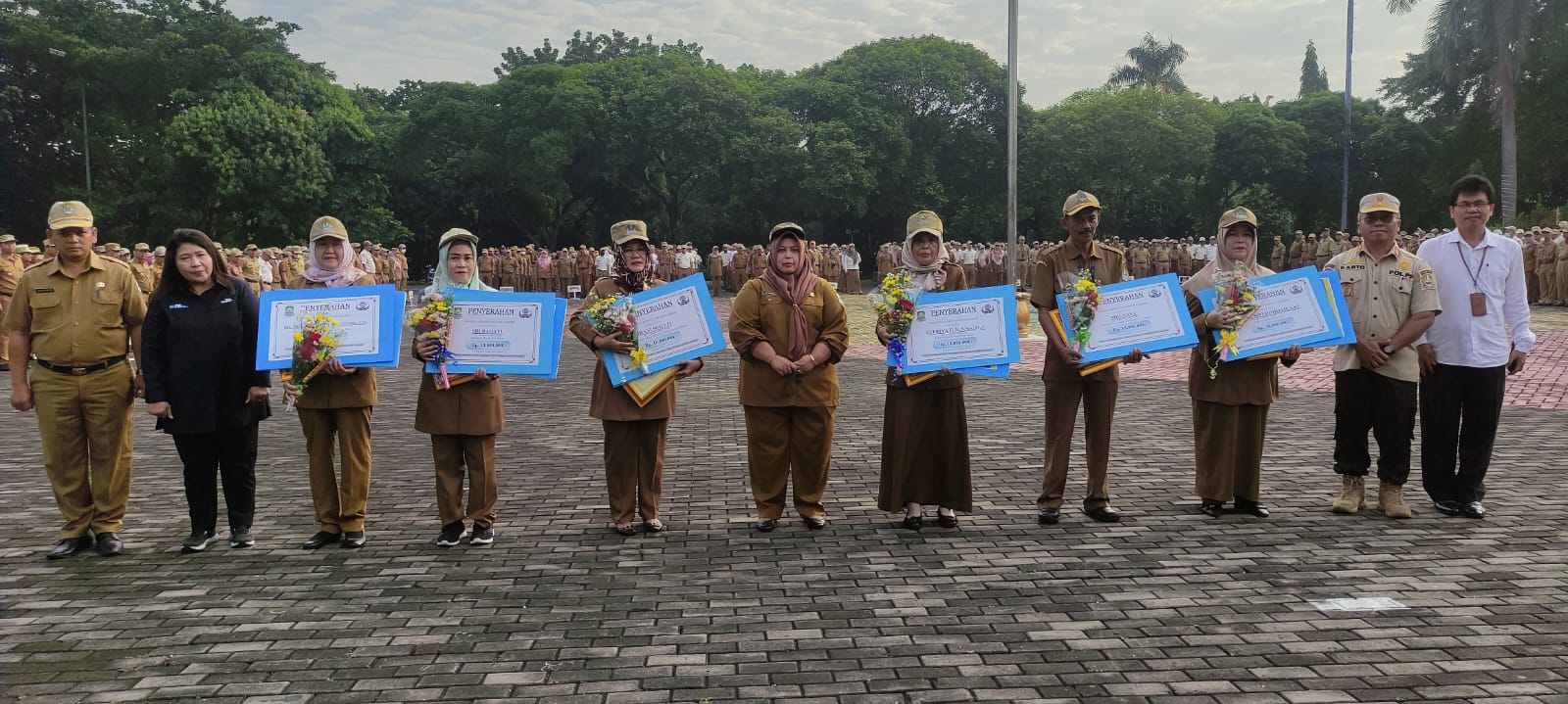 Bekasi – Plh. Sekretaris Daerah Kota Bekasi, Dwie Andyarini Dian Arga menjadi pembina apel pagi Aparatur dilingkungan Kantor Wali Kota Bekasi, Senin, (27/5/2024). Sejumlah Aparatur berbaris rapih sesuai dengan perangkat daerahnya masing-masing. Apel kali ini dirangkaikan dengan penyerahan penghargaan bagi ASN yang memasuki masa pensiun per Juni 2024.