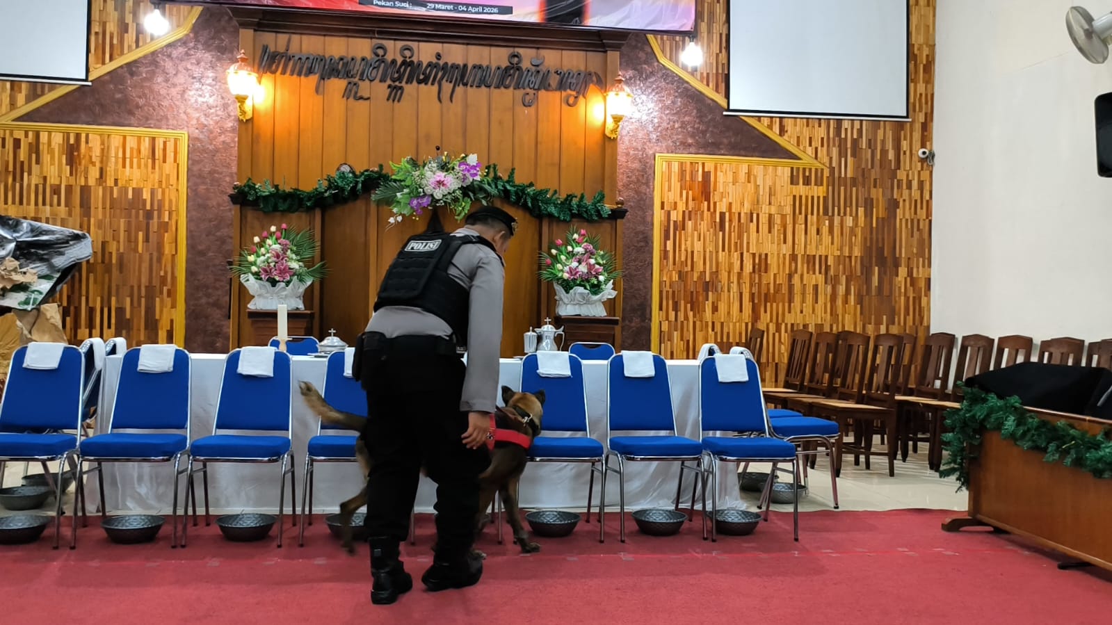 PELITAKOTA.ID: Probolinggo – Personel Polres Probolinggo Kota melakukan sterilisasi sejumlah gereja di wilayah Kota Probolinggo menjelang rangkaian ibadah Paskah. Sterilisasi dilakukan oleh Unit Satwa K9 Satsamapta untuk memastikan lokasi ibadah aman dari benda berbahaya.