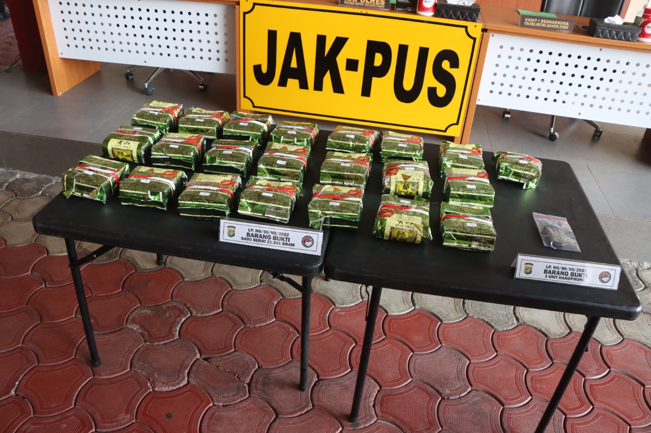 Dari hasil penelusuran dan pendalaman tersebut tim Sat Resnarkoba Polres Metro Jakarta Pusat berhasil mengamankan 22 kantomh Sabu, dengan kemasan teh Cina dengan berat 22 Kg.