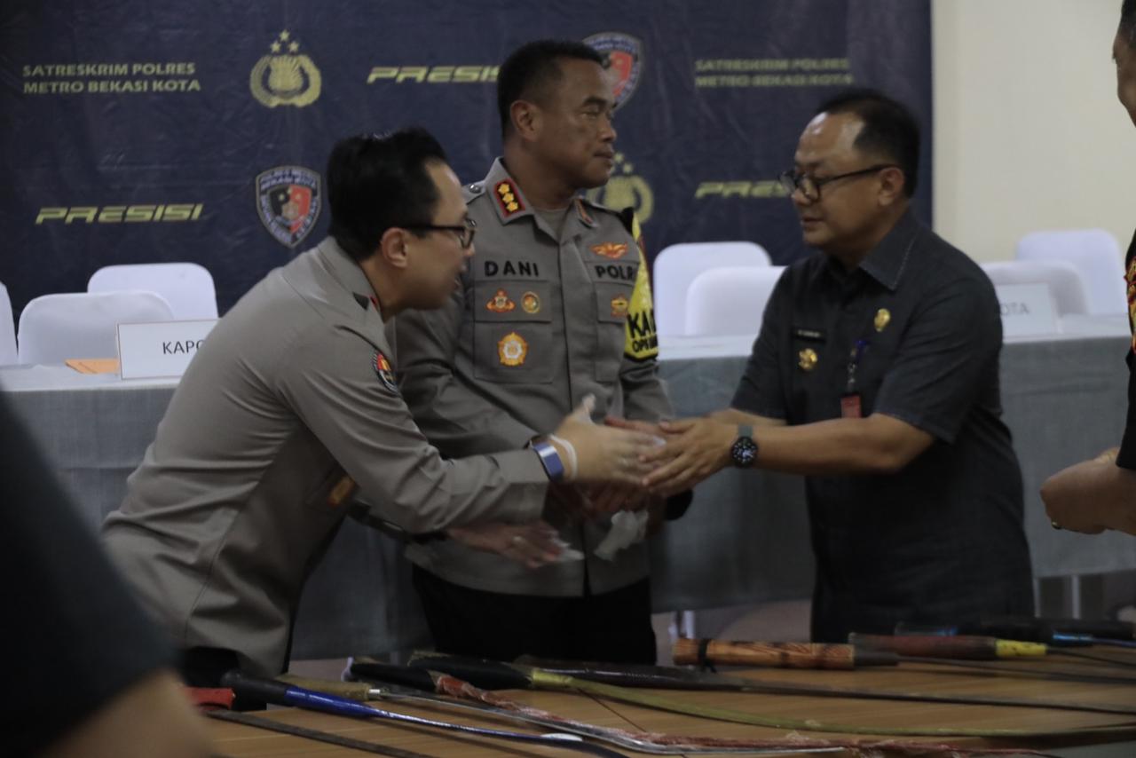 KOTA BEKASI – Polres Metro Bekasi dan Pj. Wali Kota Bekasi menggelar konferensi pers perihal perkembangan terbaru hasil investigasi peristiwa penemuan tujuh mayat yang menggegerkan masyarakat di sekitar Kali Bekasi (04/10).