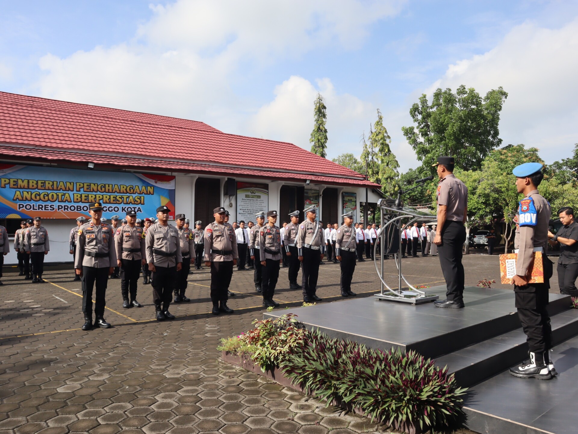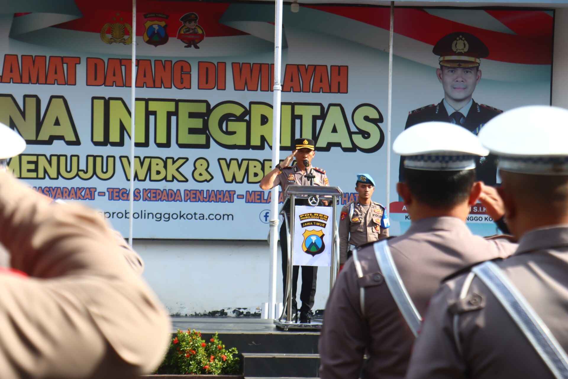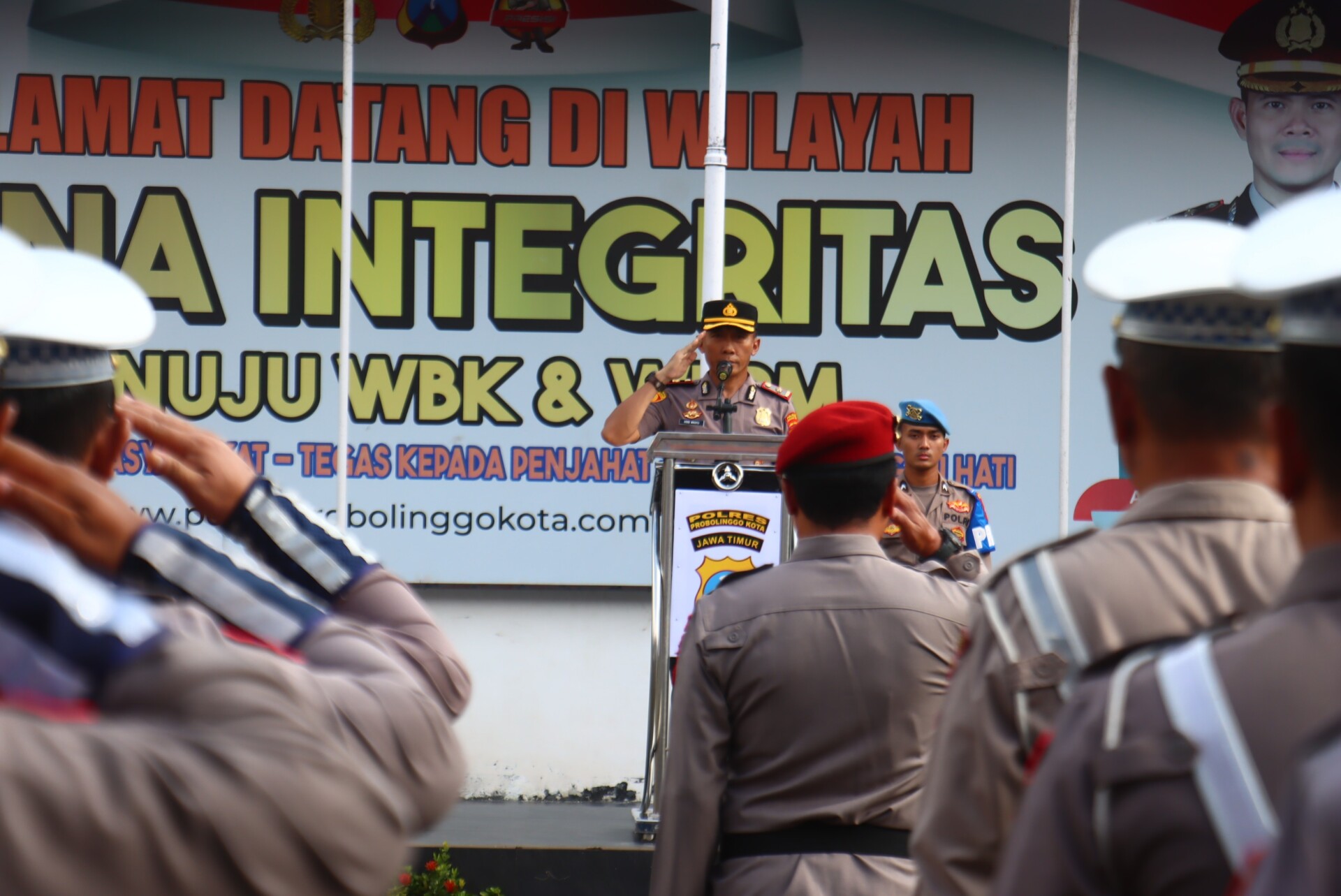 Apel dipimpin Wakapolres Probolinggo Kota Kompol Didid Wahyu Agustyawan, S.H., mewakili Kapolres AKBP Rico Yumasri, S.I.K., M.I.K. Seluruh pejabat utama, perwira, brigadir hingga ASN turut mengikuti kegiatan tersebut.