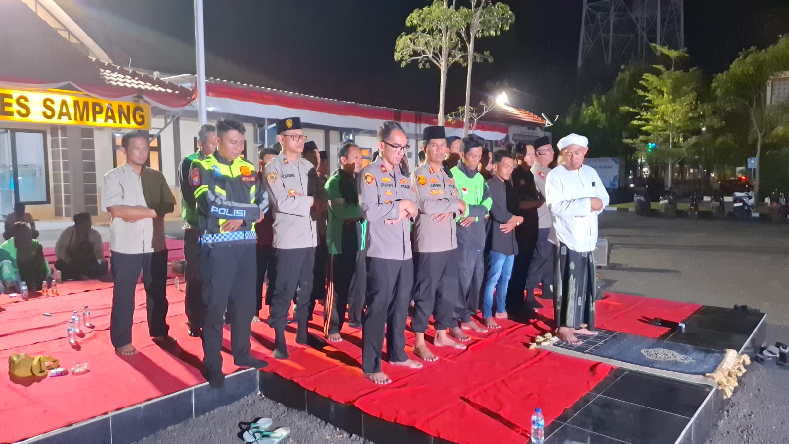 Sampang – Keluarga besar Polres Sampang bersama sejumlah elemen masyarakat menggelar doa ghaib dan tahlil untuk mendoakan almarhum Affan Kurniawan, seorang driver ojek online yang meninggal dunia pada 28 Agustus 2025 di Jakarta. Kegiatan tersebut dilaksanakan pada malam Jum’at, 29 Agustus 2025, setelah sholat Isya berjamaah di halaman Mapolres Sampang.
