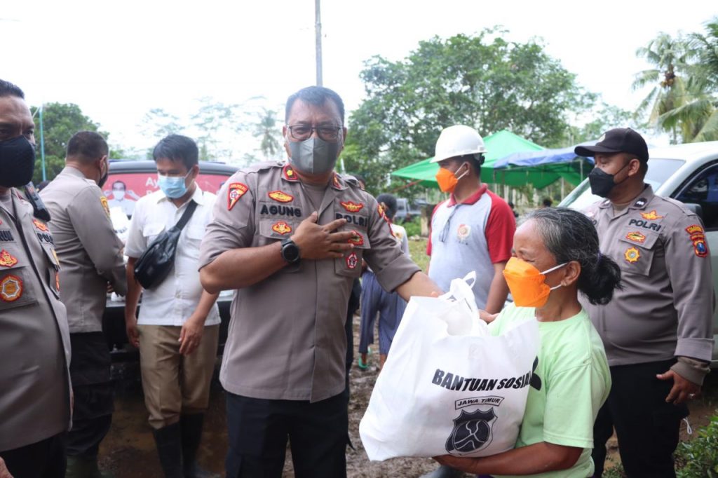Kapolresta dan rombongan sekaligus berdialog dengan warga yang terdampak banjir memberikan motivasi dan semangat.