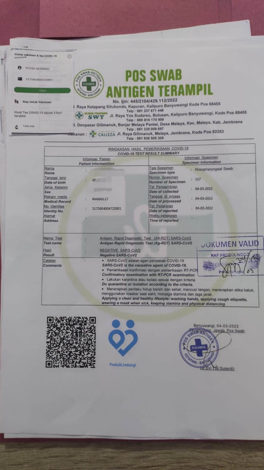 BANYUWANGI – Penyidik Polsek Kawasan Pelabuhan Tanjungwangi (KPT) Polresta Banyuwangi menetapkan satu tersangka atas dugaan surat hasil rapid test antigen palsu.