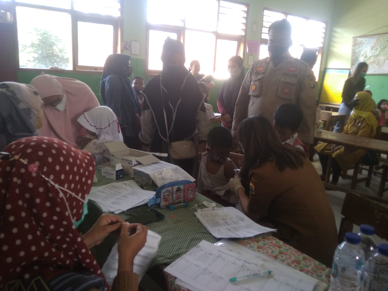 LEBAK,-Polsek Cibadak Polres Lebak bersama nakes Puskesmas Mandala kembali melaksanakan vaksinasi dosis dua usia 6-11 tahun di Sekolah Dasar Negeri (SDN) 1 Kaduagung Timur, Desa Kaduagung Timur, Kecamatan Cibadak, Kabupaten Lebak disambut antusias oleh orang tua wali murid.Senin (14/03/2022).