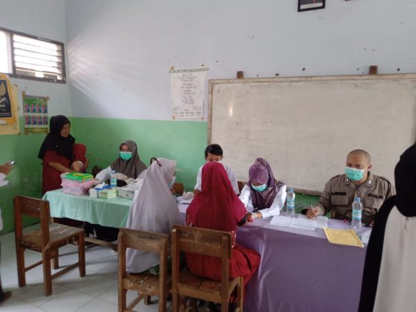 “Kami dari polsek cimarga telah bekerja sama dengan pihak puskesmas Cimarga untuk melaksanakan vaksinasi Anak SD.