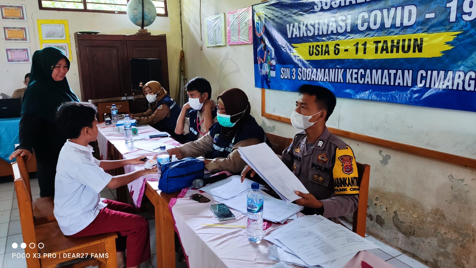 “Polsek Cimarga Polres Lebak Melaksanakan giat vaksinasi masal Usia 6-11 tahun Di SDN 3 Sudamanik kec.cimarga.