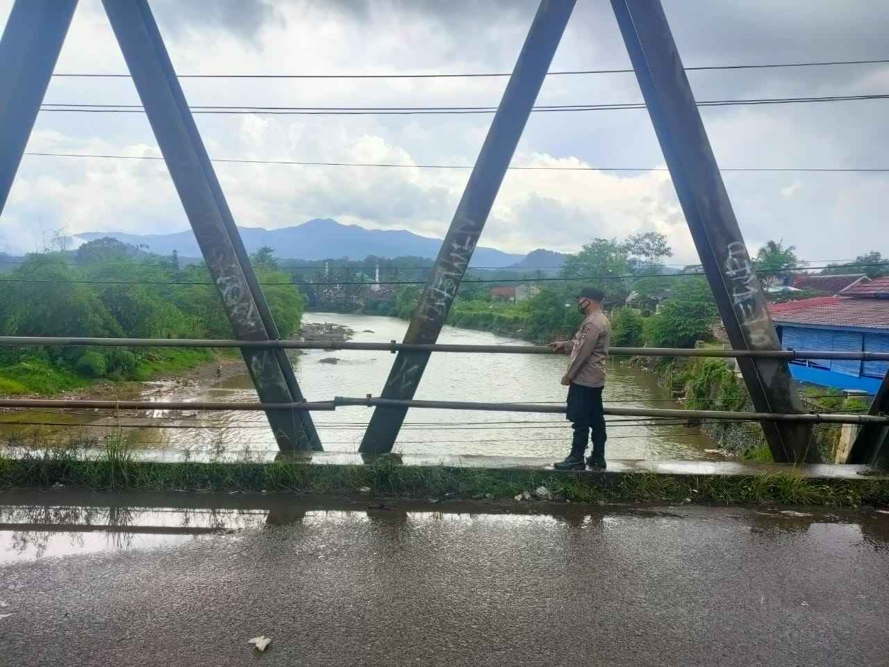 Mengingat intensitas curah hujan yang cukup tinggi sejak tadi malam yang melanda kecamatan Cipanas Jajaran Polsek Cipanas Kompol Eddy Prastyo Hermawan.SE Serta Kanit kanit binmas dan Bhabinkamtibmas Polsek Cipanas melaksanakan Patroli dan Pemantauan mengecek Bantaran sungai Ciberang Lokasi Jembatan Nunggul Desa sukasari Kecamatan Cipanas untuk mengantisipasi adanya bencana banjir maupun longsor.