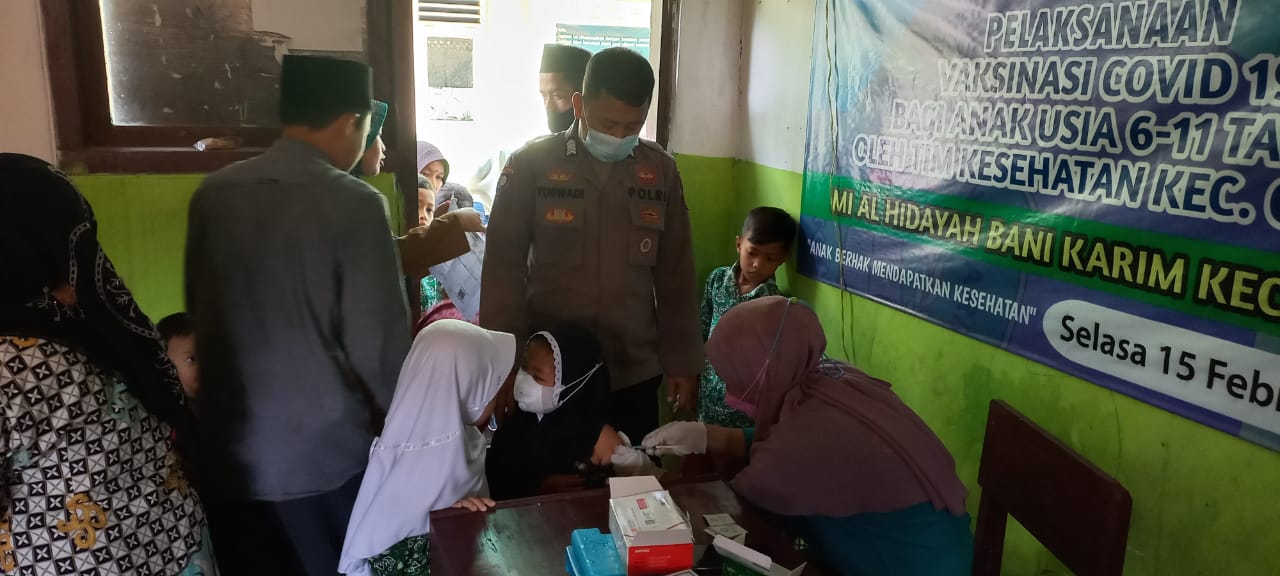 LEBAK. | Polsek Cipanas Polres Lebak gelar Vaksinasi Covid 19 bagi Anak usia 6 – 11 tahun Di MI Bani Karim Kec. Cipanas Kab Lebak, Pada Rabu (16/03/2022)