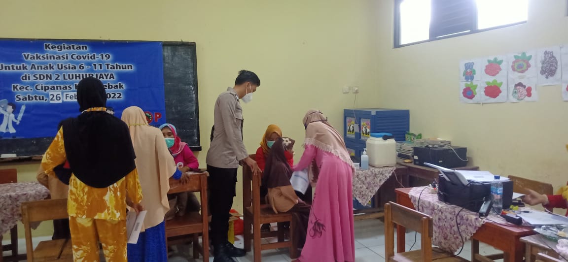 LEBAK, | Polsek Cipanas laksanakan Vaksinasi di SDN 02 Desa Luhurjaya Cipanas bagi anak usia 6-11 tahun di wilayah kecamatan Cipanas. vaksinasi anak ini sebanyak kurang lebih 69 siswa yang di dampingi wali murid .