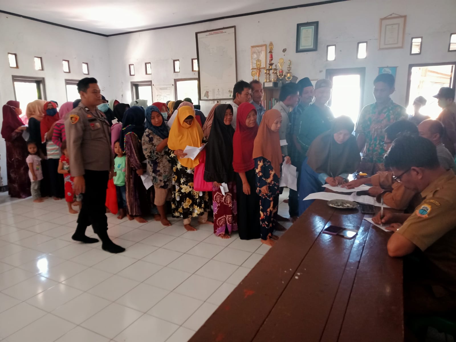 LEBAK – Bhabinkambtibmas Polsek Curugbitung BRIPTU Ridwan Maulana Tombeng melaksanakan pengamanan dan monitoring penyaluran Bantuan Langsung Tunai Dana Desa tahap 4, tahap 5 dan tahap 6 Tahun 2022 di kantor Desa Sekarwangi Kecamatan Curugbitung Kabupaten Lebak Provinsi Banten. Selasa (07/06/2022).