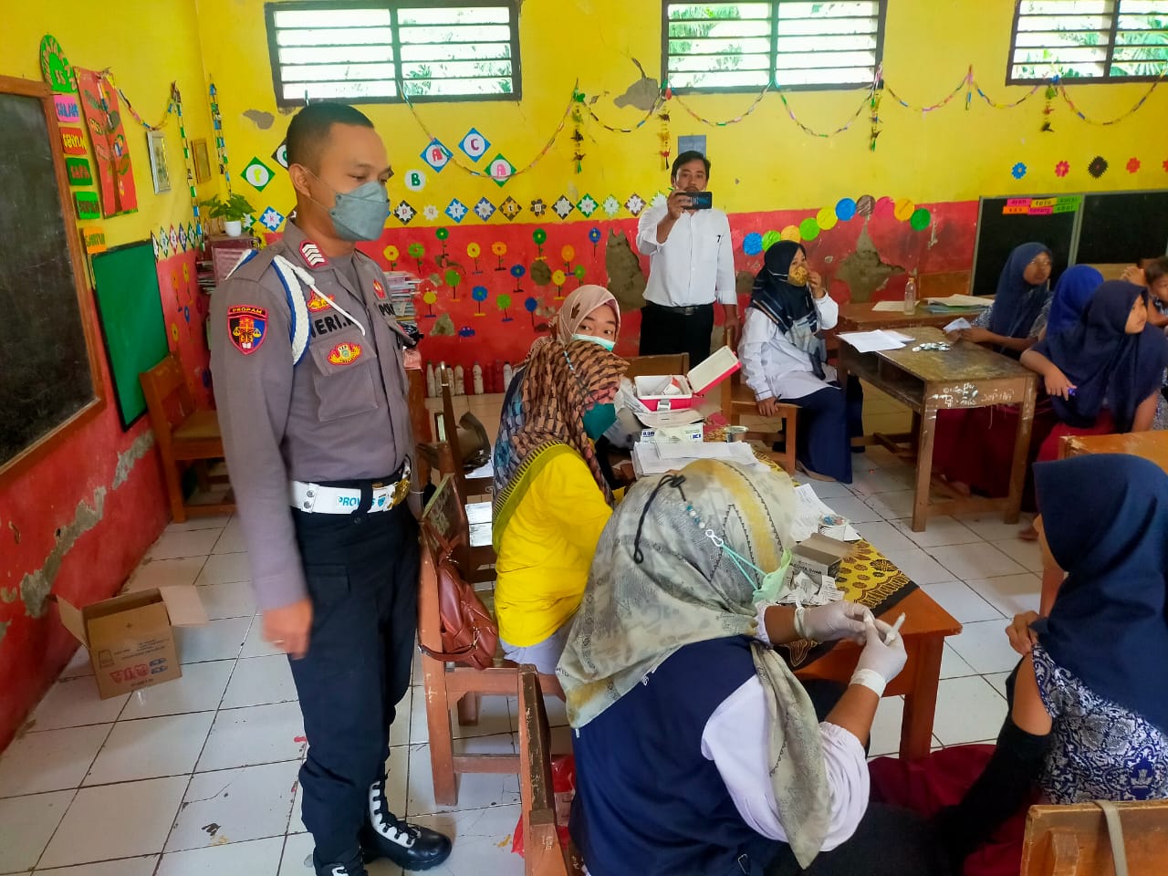 Kapolsek Curugbitung AKP Dedi Suhandi Pimpin pelaksanaan pendampingan vaksinasi covid 19 untuk usia 6-11 tahun di SDN 1 dan SDN 2 Ds. Curugbitung Kec. Curugbitung Kab. Lebak bekerjasama dengan Puskesmas Curugbitung dan Bhabinkamtibmas, Babinsa serta Satpol PP Curugbitung.