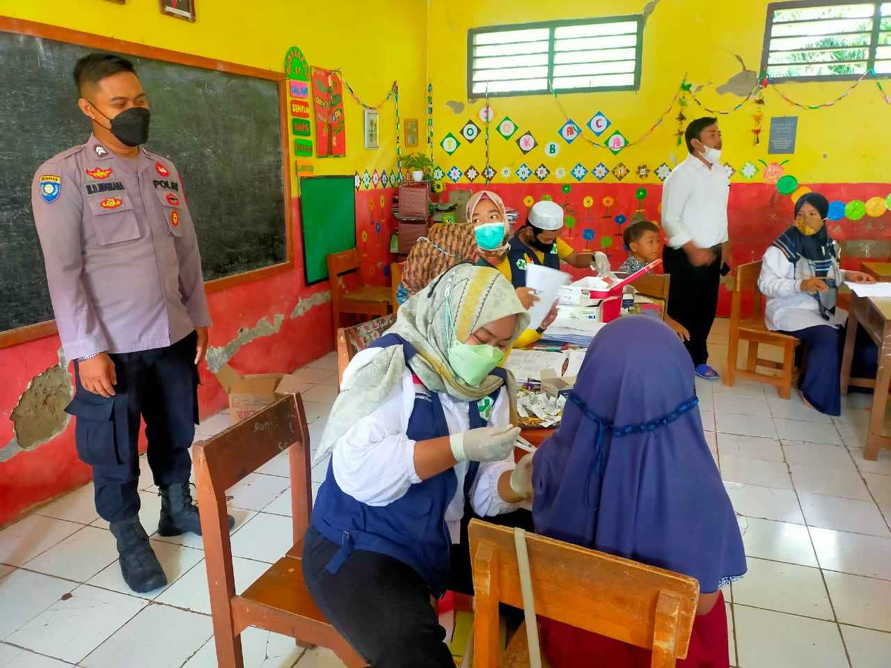LEBAK – Kapolsek dan Personil Polsek Curugbitung Polres Lebak Polda Banten bersama dengan team Puskesmas Curugbitung dan Bhabinkamtibmas, Babinsa serta Satpol PP Curugbitung melaksanakan vaksinasi covid-19 anak 6-11 tahun di SDNI 1 dan SDN 2 Ds. Curugbitung Kecamatan Curugbitung Kab. Lebak, Jum’at (11/03/2022)