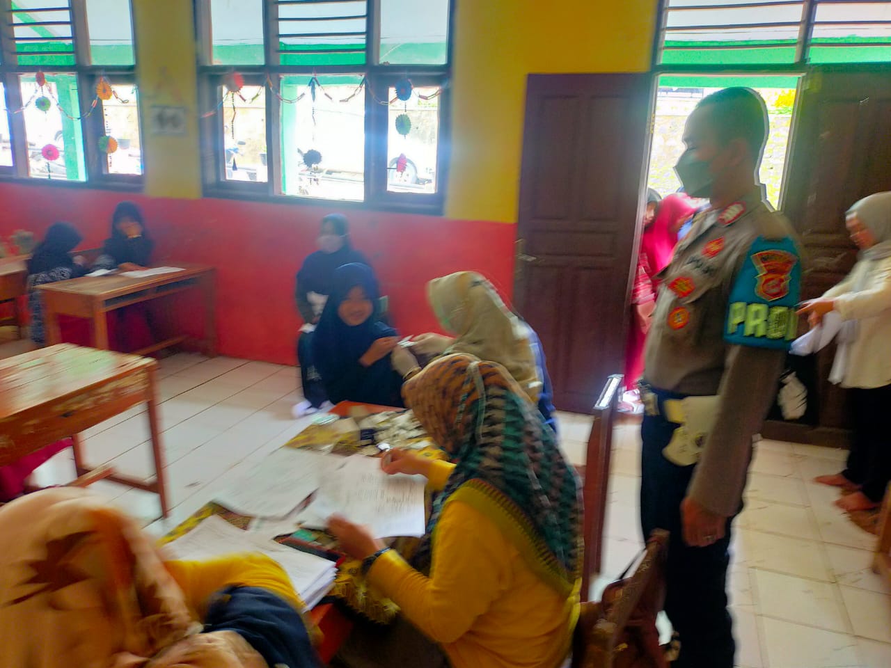 Kapolsek berkoordinasi dengan pihak sekolah dan orangtua siswa dalam pelaksanaan pendampingan giat vaksinasi covid 19 umur 6-11 tahun agar semua siswa-siswi yang berada di Sekolah Dasar desa Curugbitung Kecamatan Curugbitung Kab. Lebak dapat di vaksinasi secara menyeluruh.