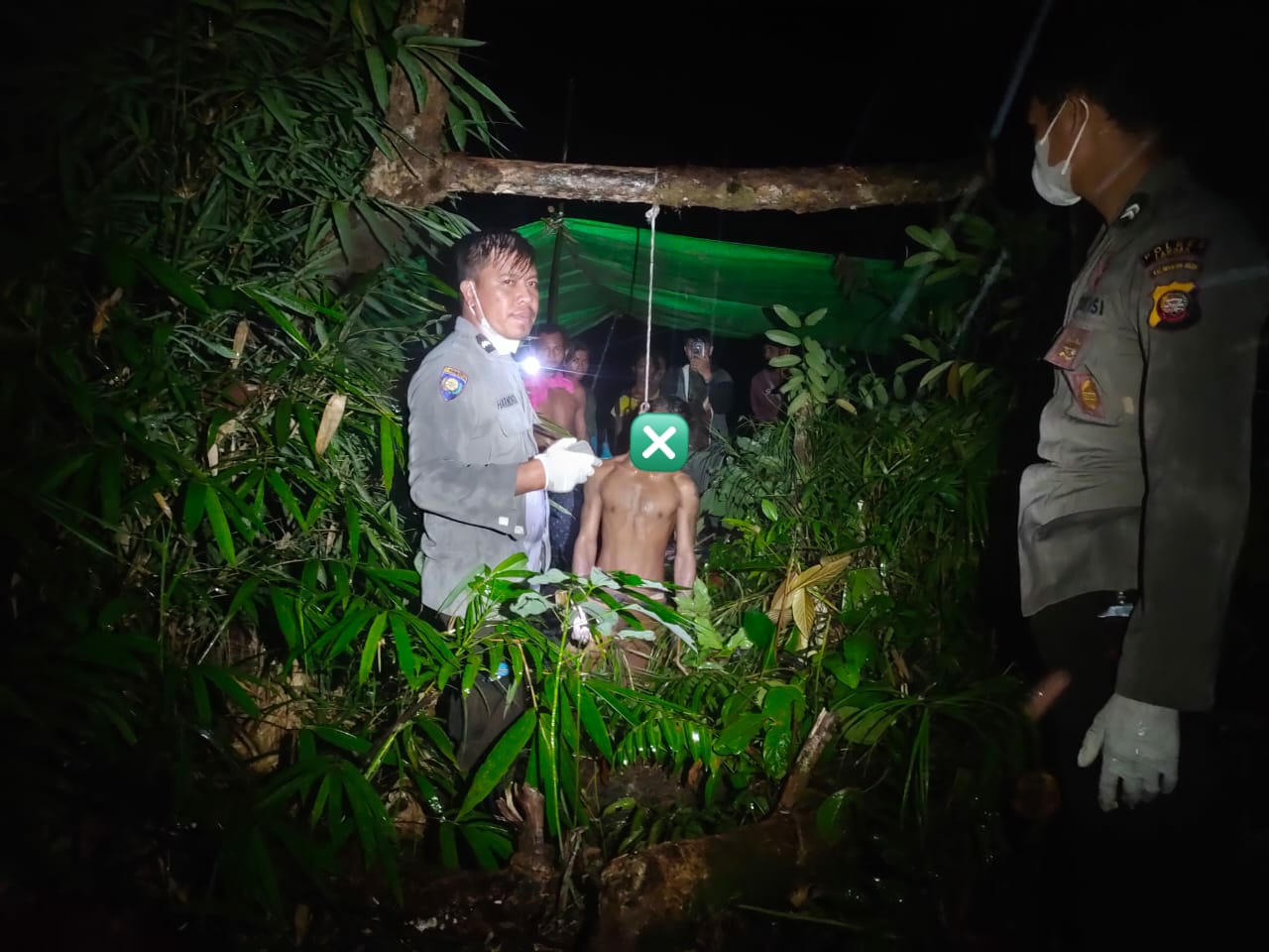 Landak – Kuala Behe, Anggota Polsek Kuala Behe mendatangi TKP (tempat kejadian perkara) Pasca menerima laporan dari masyarakat terkait dengan adanya dugaan salah seorang laki – laki mengakhiri hidupnya dengan cara gantung diri, di Dusun Panit Desa Sejowet Kec. kuala Behe Kab. landak, Kalbar, Sabtu (02/07/2022).