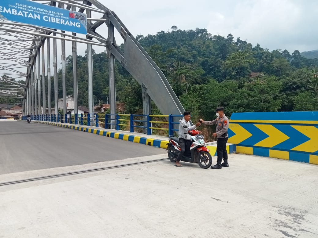 Lebak || Pandemi Covid-19 yang belum berakhir Polsek Lebak gedong, terus memberikan Himbauan kepada warga masyarakat yang melintas di jalan Raya, di area sekolah, tempat wisata serta di perkantoran Desa Ciladaeun Kecamatan Lebak gedong tentang pentingnya Prokes di dalam ruangan tertutup dan juga membagikan Masker gratis Pada hari Senin (20/06/2022)