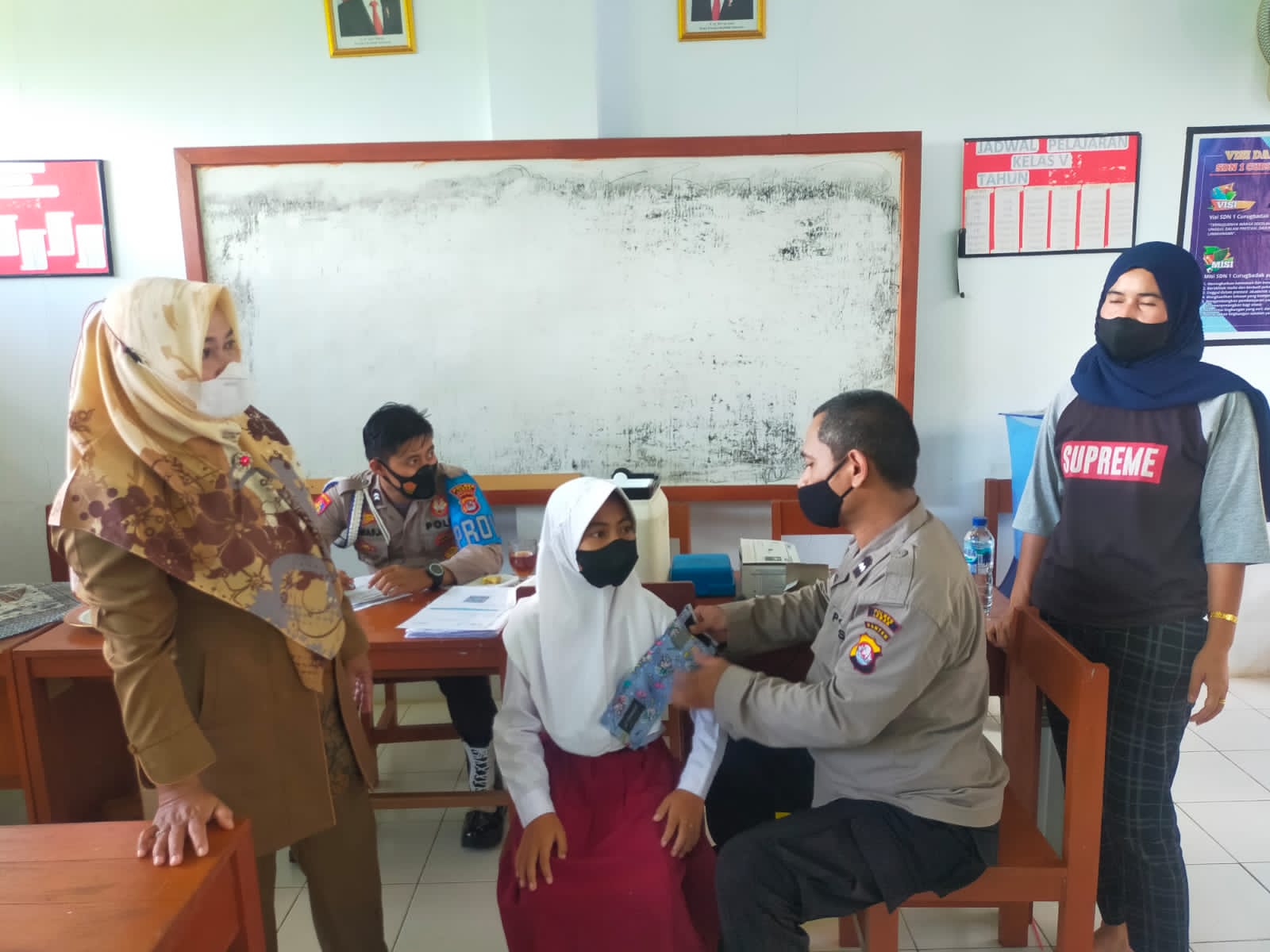 Kapolsek mengajak dan berkoordinasi dengan pihak sekolah dalam pelaksanaan giat vaksinasi umur 6-11 tahun