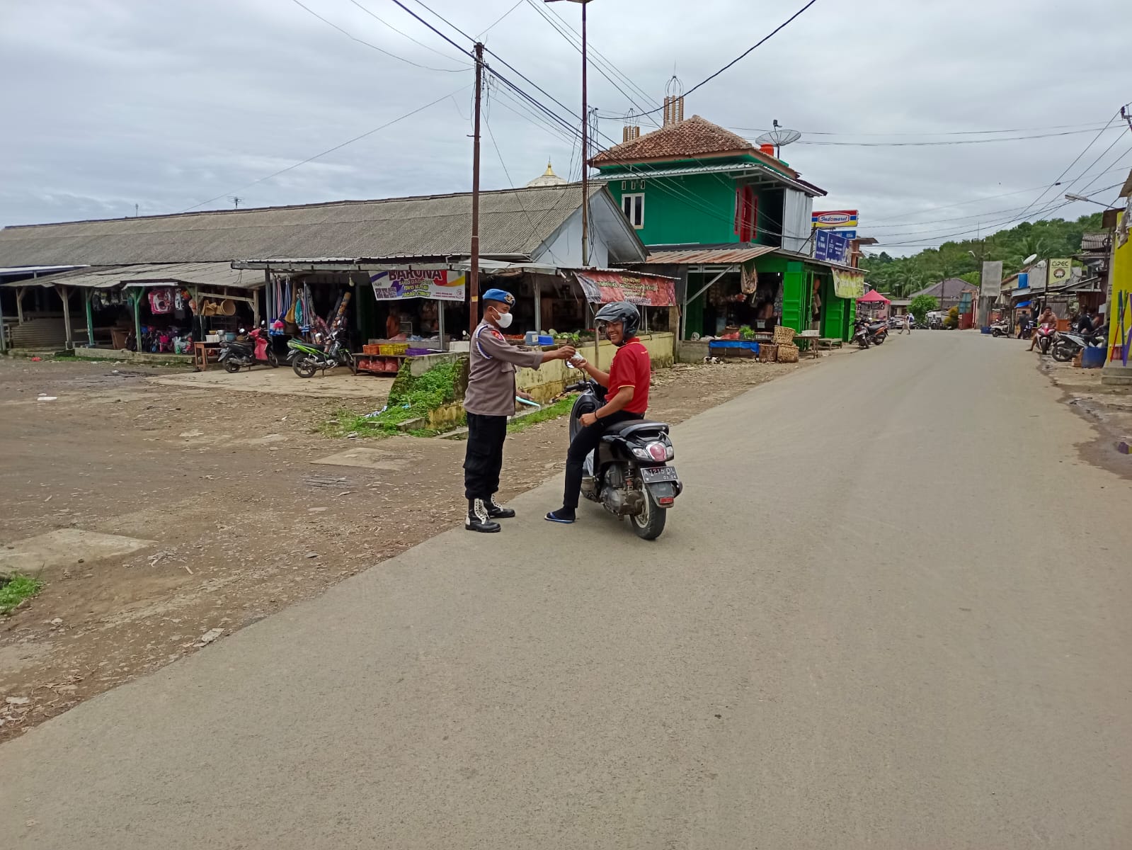 “Hari ini kita membagikan masker gratis kurang lebih sekitar 100 buah masker kepada Warga Pengendara kendaraan bermotor di Jl. Raya Ciminyak Kec. Muncang” kata Adi Priyanto