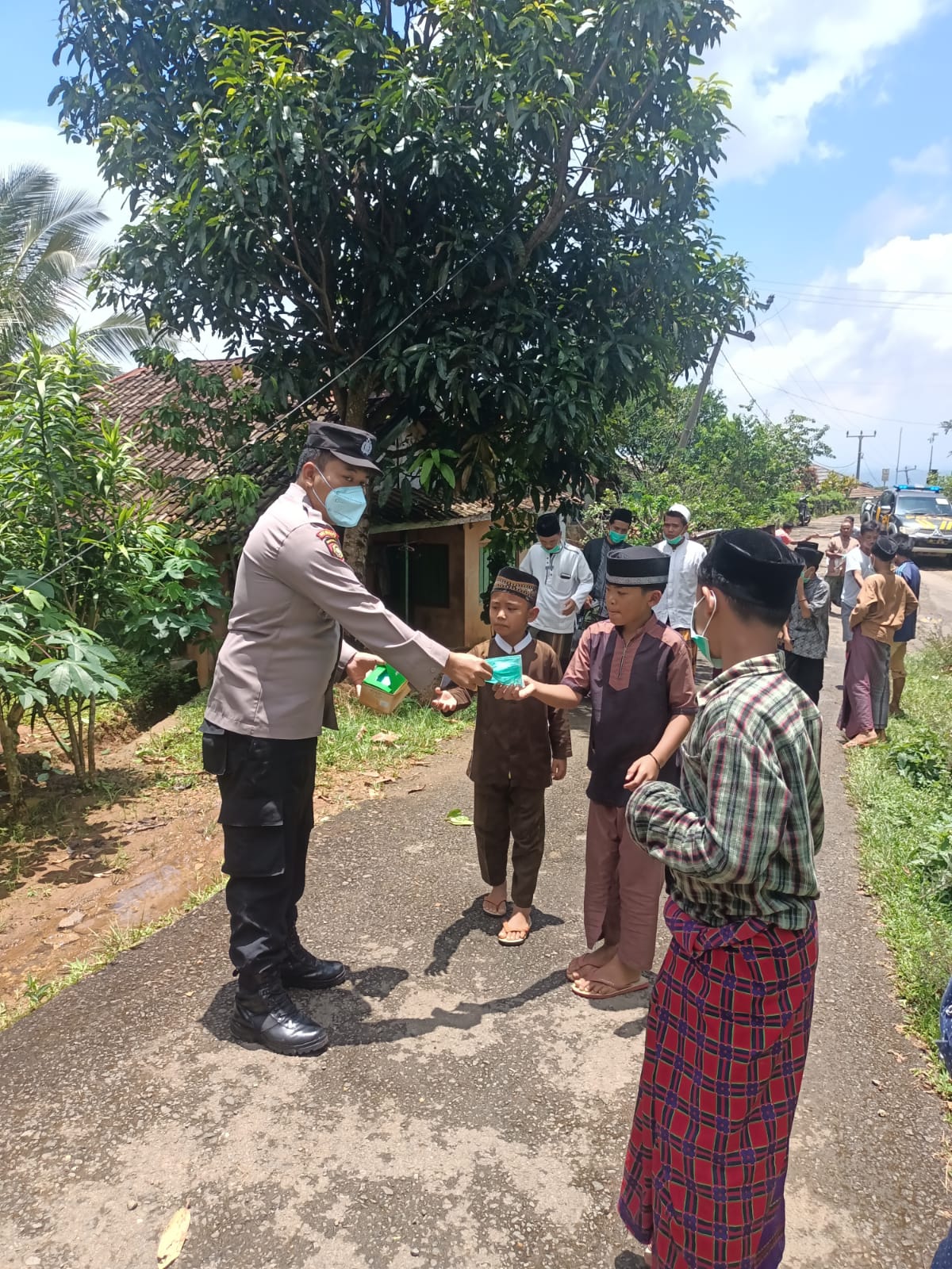“Hari ini kita membagikan masker gratis kurang lebih sekitar 100 buah masker kepada Warga di desa Muncang Kec. Muncang” kata Adi Priyanto