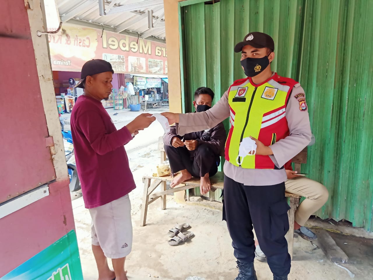 “Hari ini kita membagikan masker gratis kurang lebih sekitar 100 buah masker kepada Warga Pengendara kendaraan bermotor di Jl. Raya Ciminyak Kec. Muncang” kata Adi Priyanto