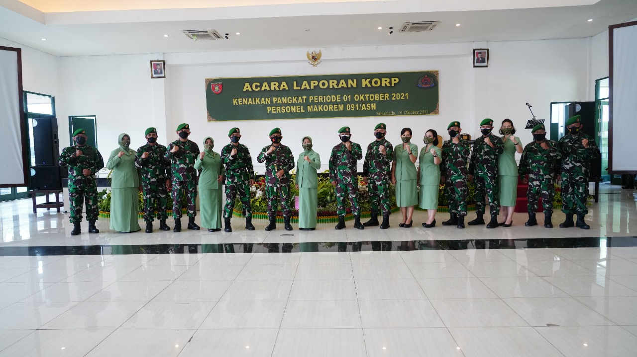 Upacara korps kenaikan pangkat tersebut dipimpin oleh Danrem 091/ASN Brigjen TNI Cahyo Suryo Putro di aula Makorem 091/ ASN Jalan Gajah Mada No 11, Samarinda pada Jum’at (1/10/2021).